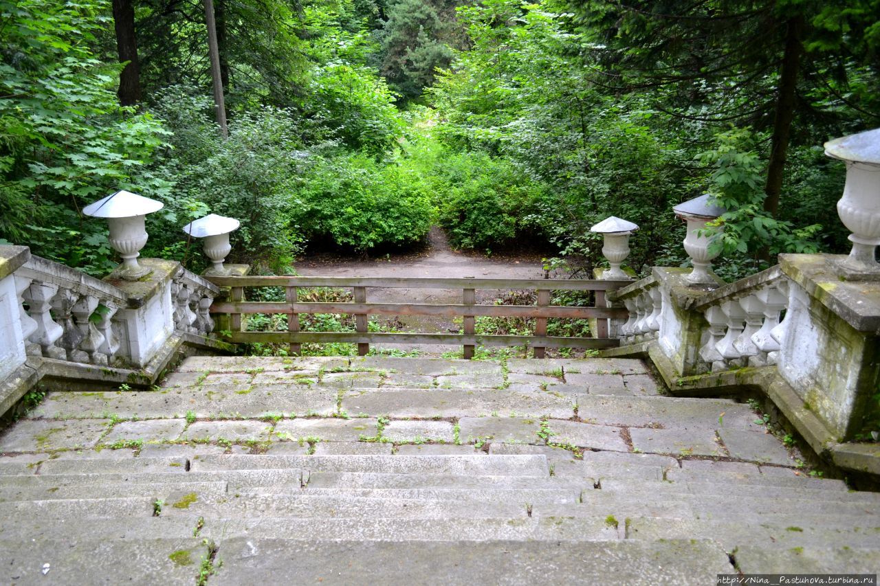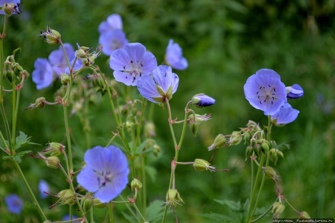 От дворца, по тропинке, стали спускаться вниз, к прудам. Раньше здесь была аллея из чёрных роз, саженцы которых покупались во Франции за золото, можно только представить как же это было красиво. Сейчас же глаз радуют небесно-голубые цветы.