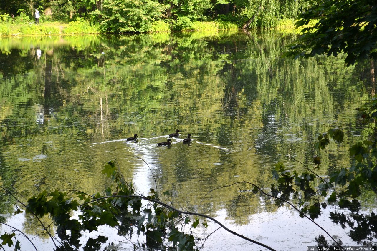 К сожалению, изящного мостика на остров уже не существует, и добраться до беседки летом можно лишь на лодке. Нам сказали, что можно пройти по упавшему дереву, но из воды виднелась только небольшая его часть, поэтому побывать на островке не удалось, хотя очень хотелось.