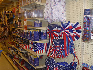 Бело-сине-красная паранойя. Она на каждой второй полке. В глазах пестри и рябит. Национальная черта американцев кричать о том, что я хорош вот таким невербальным способом. Весьма натужно и неестествеено, с моей точки зрения, но такой менталитет.
