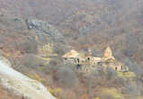 Монастырь как всегда на небольшом пригорке с которого можно контролировать проход по ущелью. То что видно издалека строили в двенадцатом — тринадцатом веках. Все что было до этого практически полностью разрушили сельджуки.