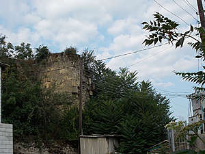 В селе мне повезло познакомиться сначала с местным учителем, имя которого к сожалению не запомнил, перевирать не стану. Он показал мне остатки крепостных сооружений внутри самого села. К сожалению это все лишь небольшой обломок стены на окраине и такой же осколок в центре. При чем, как сказал мне мой проводник, еще пару лет назад на этом месте находился целый форт с остатками бекского дома, но сейчас на этом месте гордо высится двухэтажная новостройка...