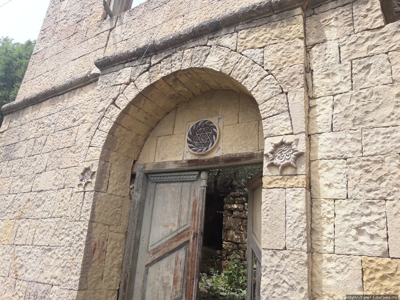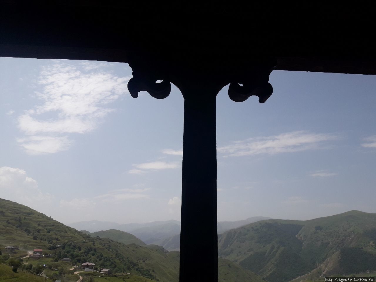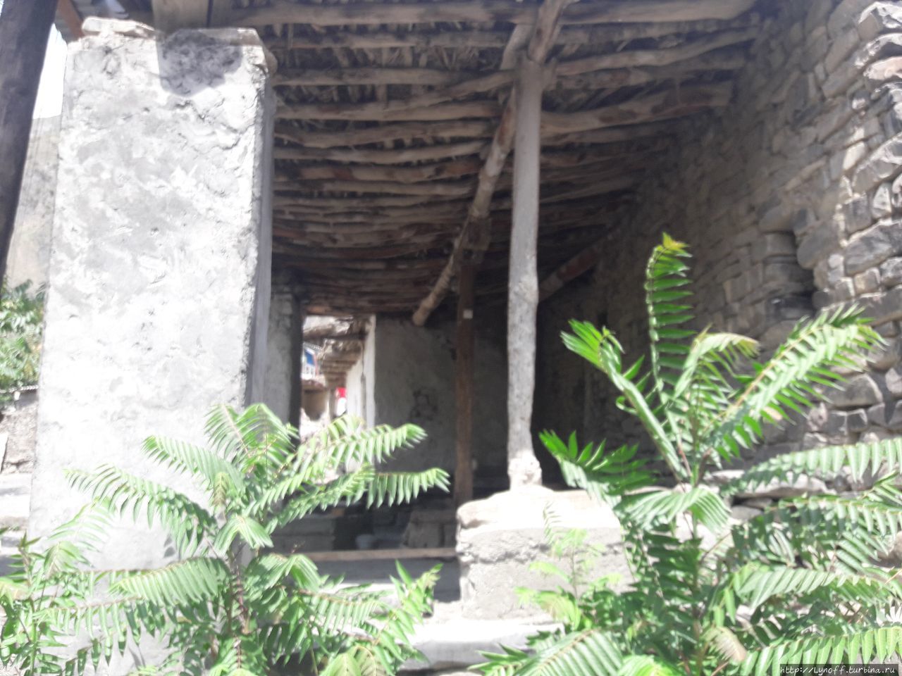 Расположение Гамсутля, честно говоря, поражает. Из каких соображений люди могли поселится и жить в таком труднодоступном месте? Только из соображений обороны и безопасности можно было забраться на эту скалу. Вот вид из Гамсутля вниз на дорогу, если увеличить фото можно разглядеть внизу маленькую красненькую машинку — это для понимания того, как высоко нужно подниматься. Гамсутль явно был основательным селом об этом говорит качество кладки и остатки декора и это при том, что туда не было дороги, только тропинка для лошадей и ишаков. Я, естественно, хотел посмотреть дом, где жил Абдужалил и увидев дом ниже на фото решил что это он и есть. Однако, как нам потом сказал Заур, многие по ошибке принимают этот дом за дом Абдужалила хотя он им не является, дом Абдужалила находится чуть дальше. Мы туда не дошли.Салтинский водопад
