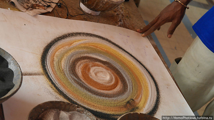 Из национального творчества — картины: во-первых, из песка, процесс творения которых в какой-то мере завораживает, а во-вторых, да простят меня гринписовцы, из крыльев бабочек:)