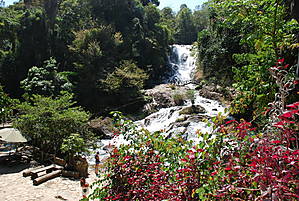 Вверху, там, где находятся кассы, в большом количестве присутствуют и кафе-рестораны, и магазины с дегустацией. Но мой совет — не покупайте. Дороже на порядок, чем в любом прибрежном городе. Например, вытяжка из артишоков стоила 500 000 донгов. На фото она в нижнем правом углу, красные упаковки. В Нячанге, на рынке она же стоила 200 000.