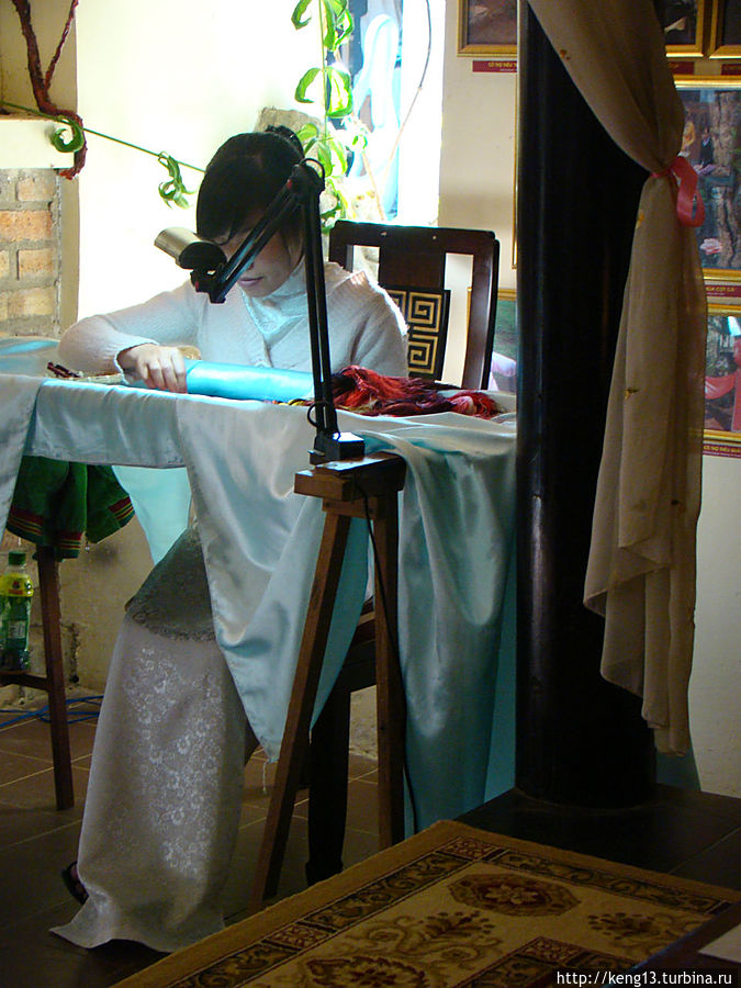 Есть в Далате ещё одно интересное место – фабрика шёлка. Сначала когда нам предлагали посетить фабрику мы активно отказывались, полагая что это просто какой ни будь магазин и её посещение сведётся как всегда к отчаянным попыткам нам что то впарить. Но на этот раз мы ошиблись, фабрика оказалась весьма интересным местом – это частная мануфактура с несколькими выставочными залами. Интересно было посмотреть на шедевры сотканные из яркой и красочной шёлковой нити, обладающие потрясающей реалистичностью, на то как они создаются, ведь прямо в залах творя волшебство за станками трудятся девушки создавая новые полотна. Приятно было прогуляться по симпатичному внутреннему дворику который с лёгкой руки можно назвать модным нынче словом — аутентичный.