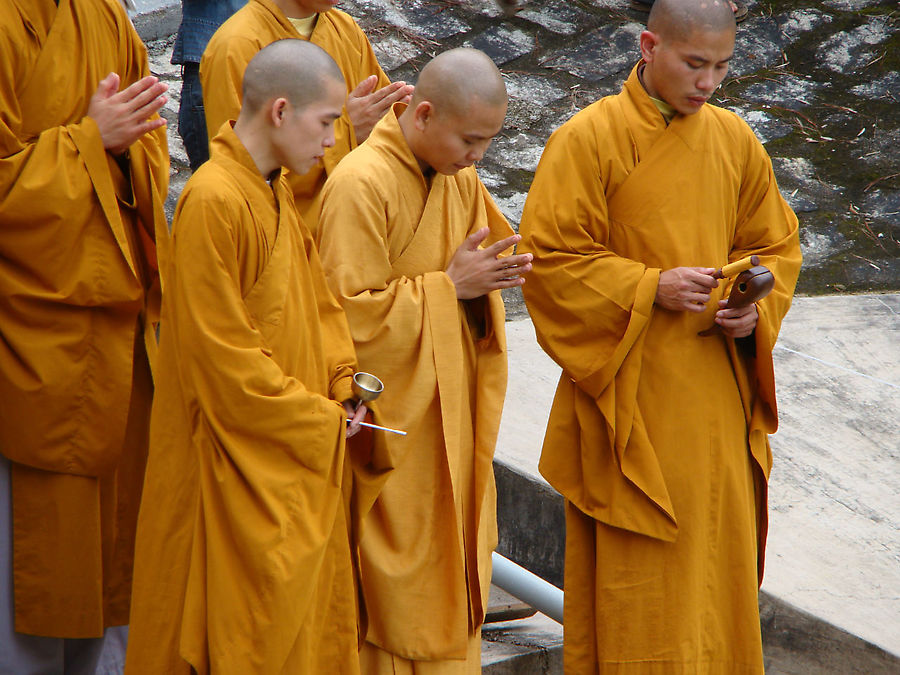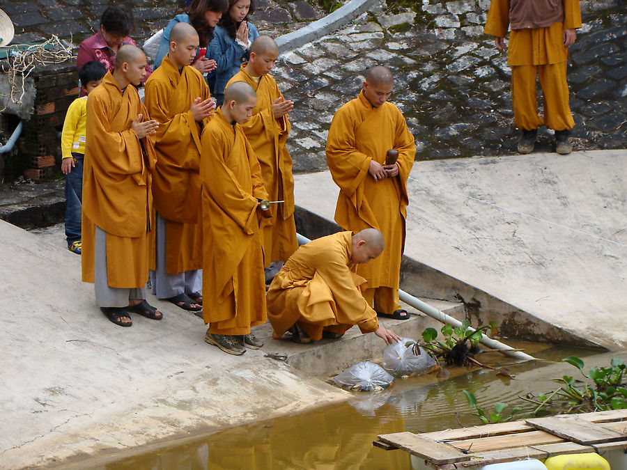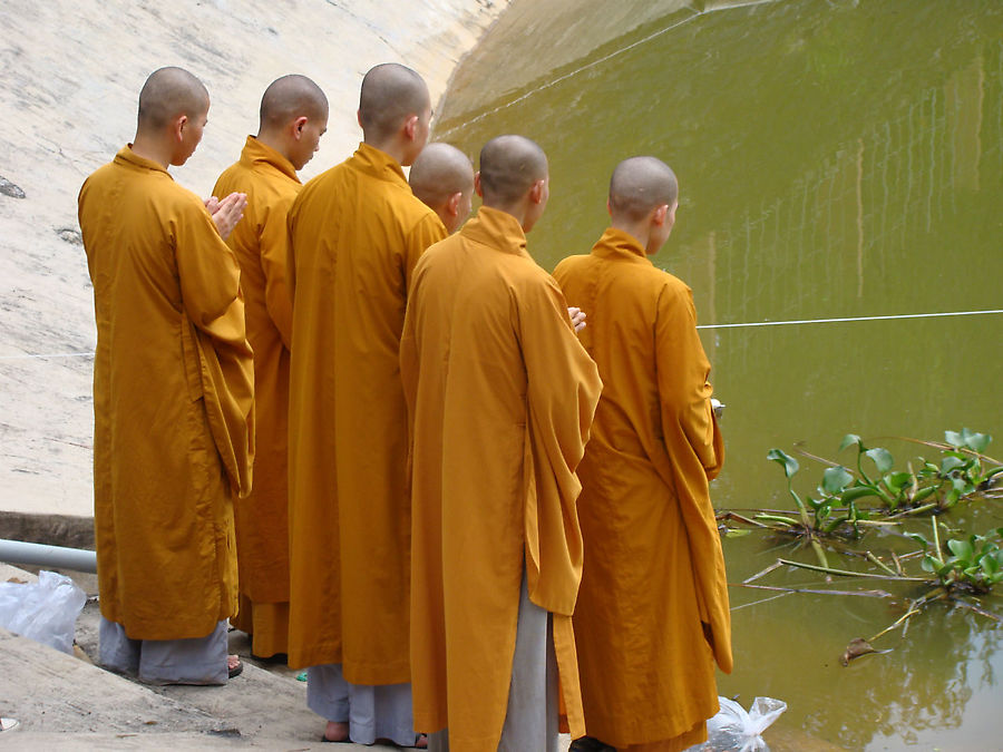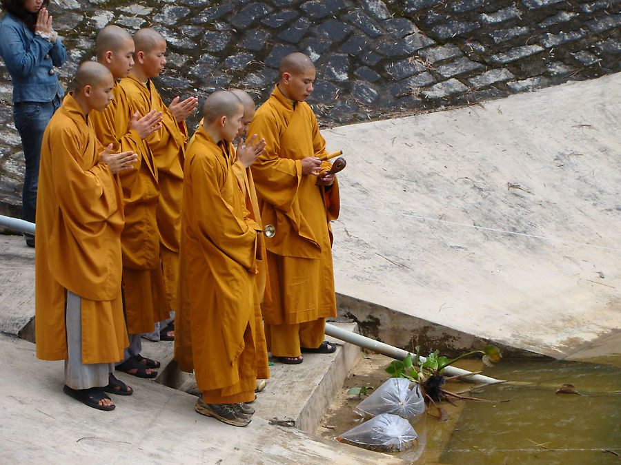 В монастырском парке, у пруда, мы увидели группу молящихся монахов.