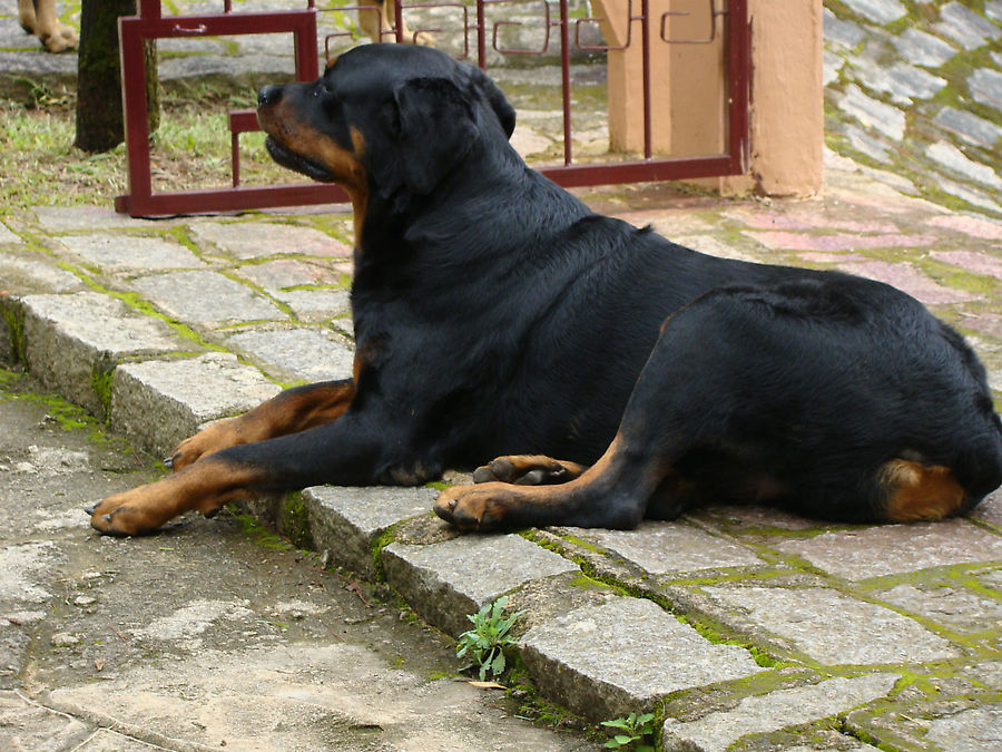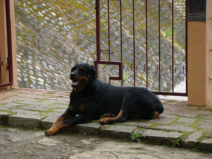 Вход к пруду охранял верный пес.