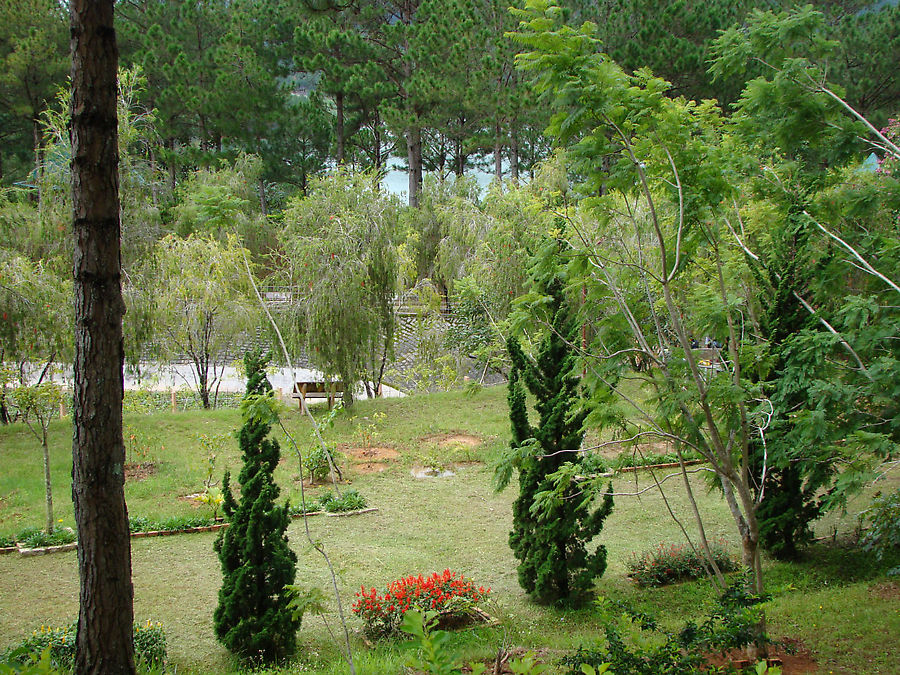Вокруг пагоды, в красивом парке, разбит пестрый цветник.