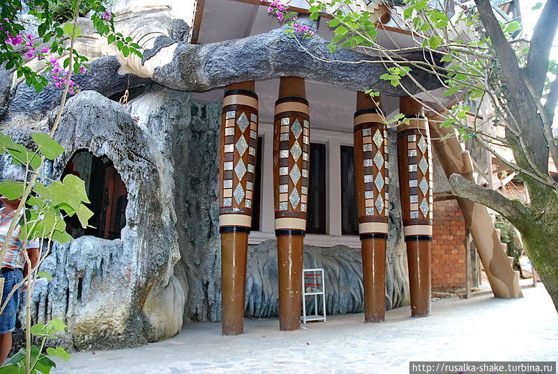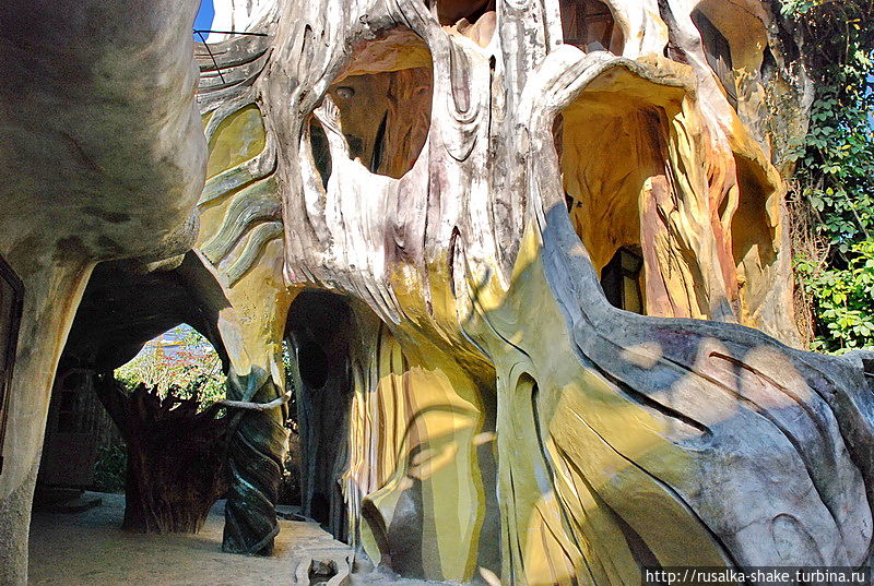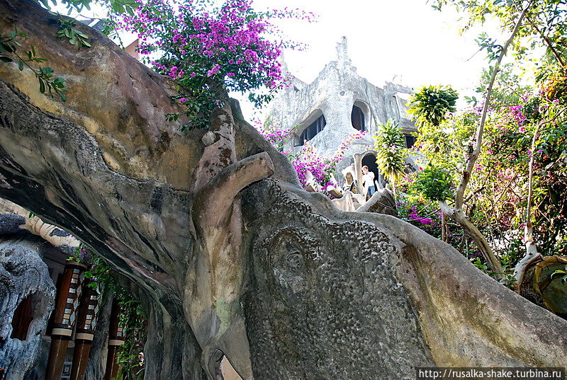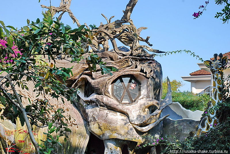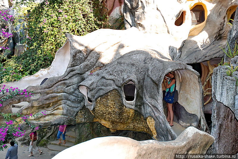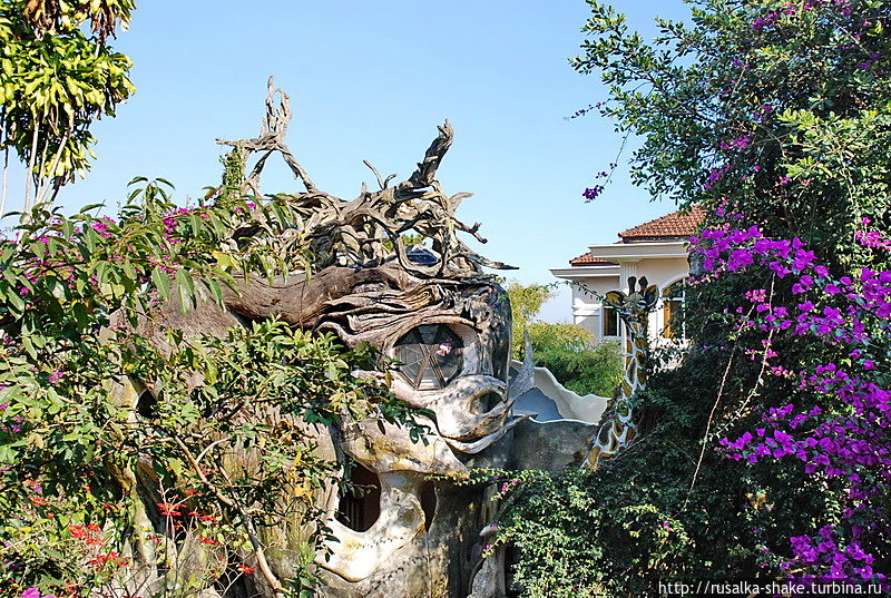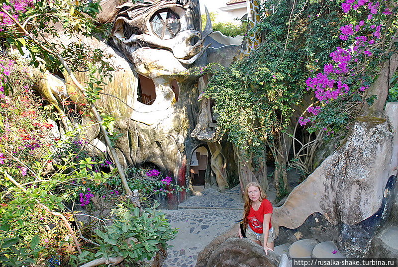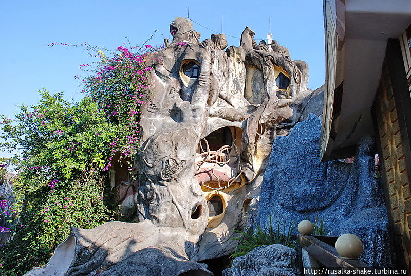 Здесь я увидела извилистые комнаты, соединенные разнообразными лестницами и переходами, окна неправильной формы, фигуры животных, служащие каминами, бра в виде фонариков и многое другое. Этот дом спроектировала архитектор по имени Данг Вьет Нга — дочь вьетнамского партийного вождя, прожившая 14 лет в Москве.