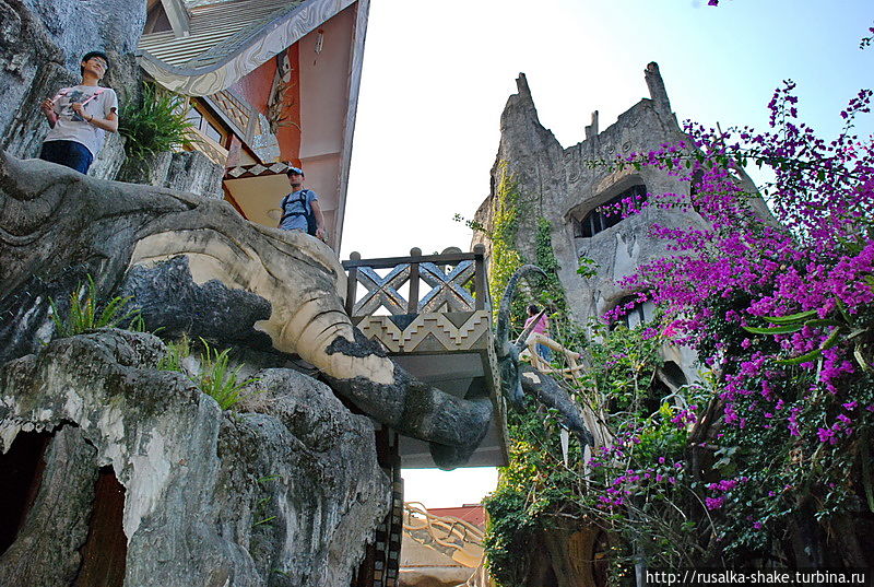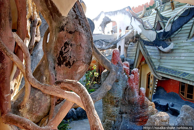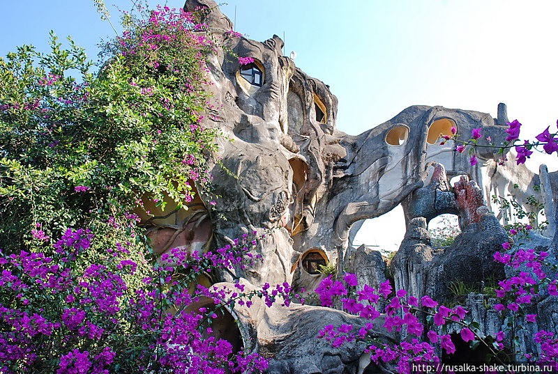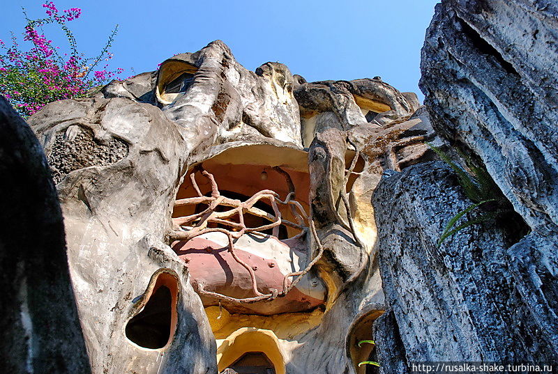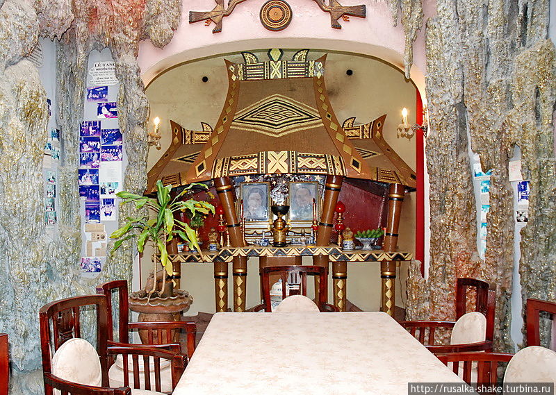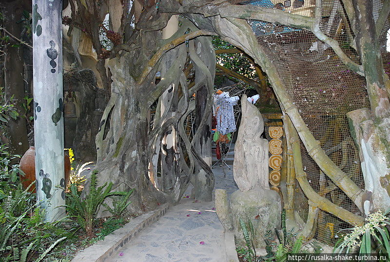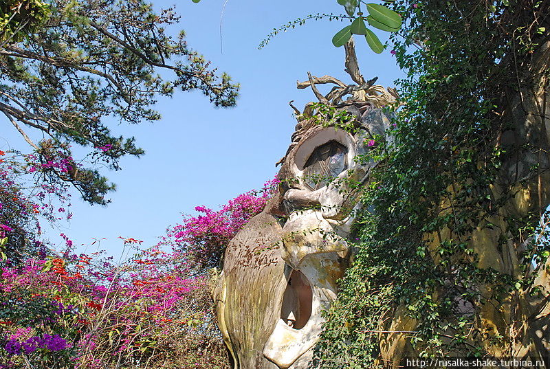 Здесь я увидела извилистые комнаты, соединенные разнообразными лестницами и переходами, окна неправильной формы, фигуры животных, служащие каминами, бра в виде фонариков и многое другое. Этот дом спроектировала архитектор по имени Данг Вьет Нга — дочь вьетнамского партийного вождя, прожившая 14 лет в Москве.