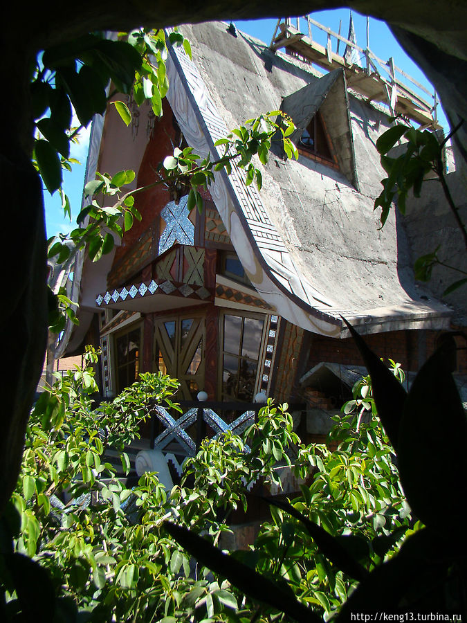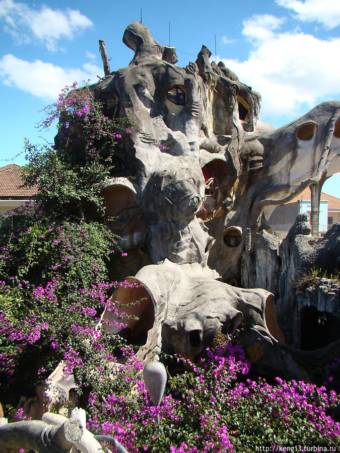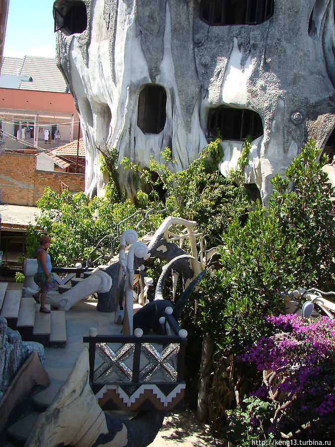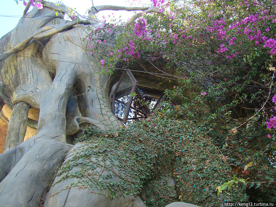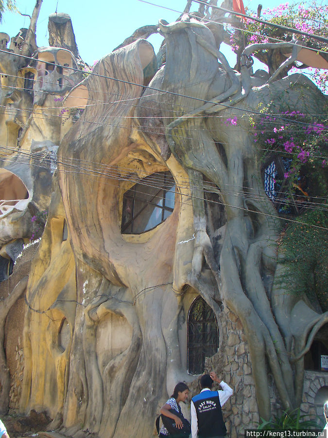Да, да и во Вьетнаме есть свой Гауди и это госпожа Данг Вьет Нга хозяйка и создательница галереи и гостиницы Ханг Нга, прозванной в народе просто «Сумасшедший Дом». Сравнить архитектуру этого строения могу пожалуй только с творениями Гауди, здесь нет ни одной похожей комнаты, не найдётся и пары схожих элементов или архитектурных решений, здесь есть пещеры, гигантские паутины, бетонные стволы деревьев, гигантский бетонный жираф и многое, многое другое.
