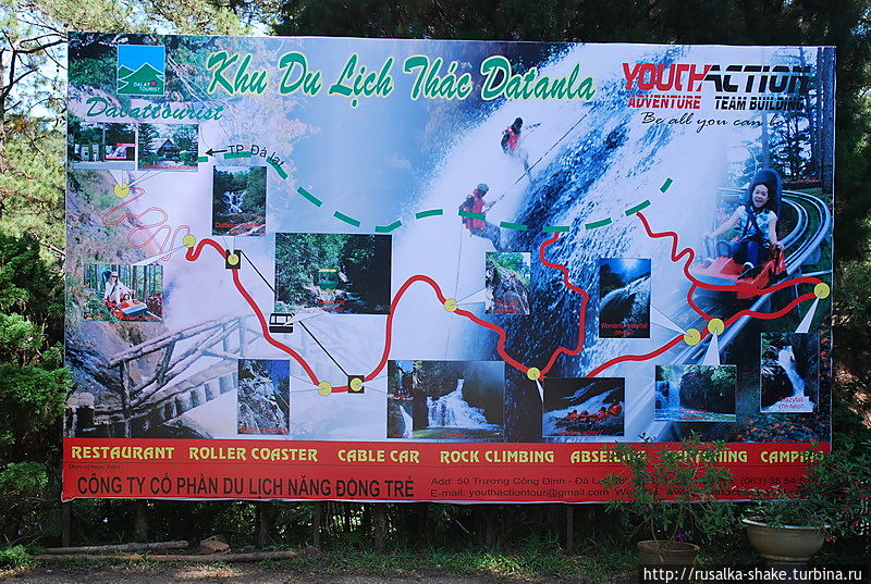 Водопад Датанла (Datanla fall) расположен в пяти километрах к югу от Далата на половине пути к его старшему брату – водопаду Пренн . Несмотря на такое незвучащее название — это вполне вполне красивый водопад с множеством каскадов,