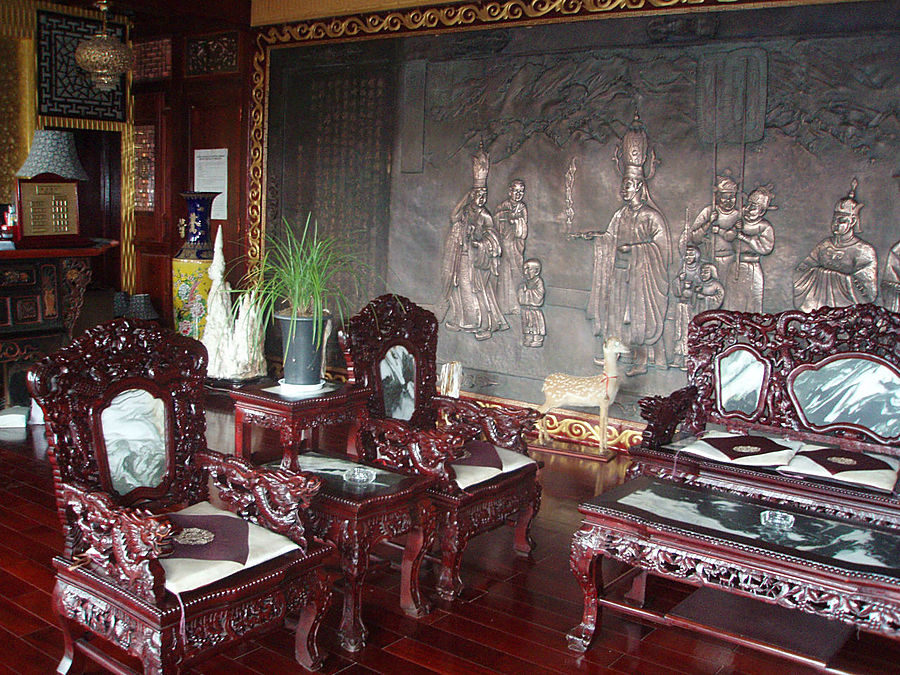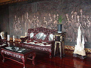Резьбой по дереву и камню украшены крыши и ворота домов, а особенно мебель.