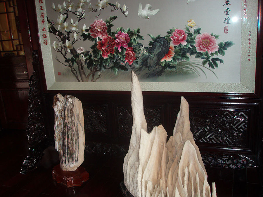 много вставок из спила мрамора и цветного агата, подобранного в виде пейзажных