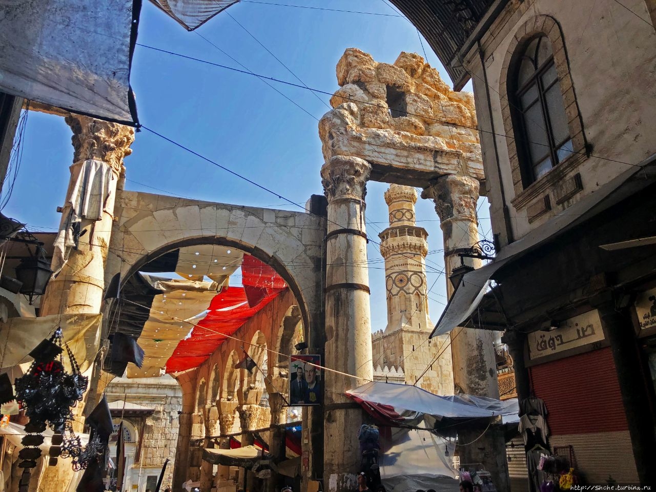 Аль Хамидийя. Исторический рынок Дамаска, крупнейший в Сирии, замечаешь впереди древнеримские каменные колонны с резными капителями и небольшую колоннаду... Так порлучилось, что это все, что сохранилось от некогда самого большого храма римской Сирии.