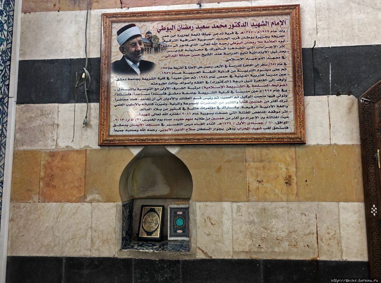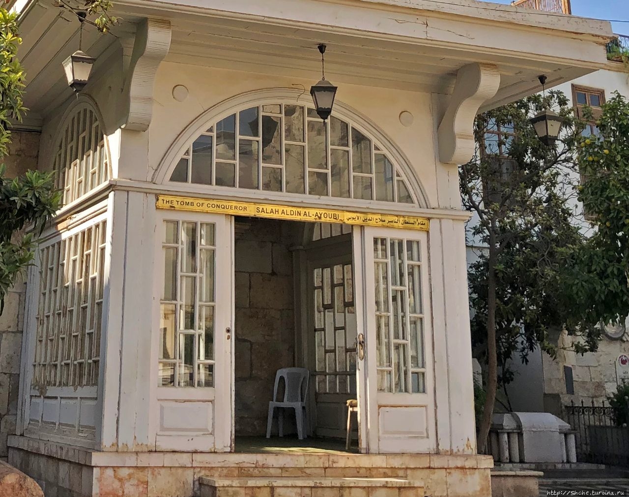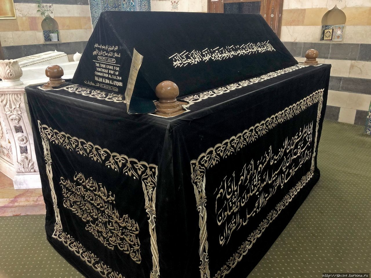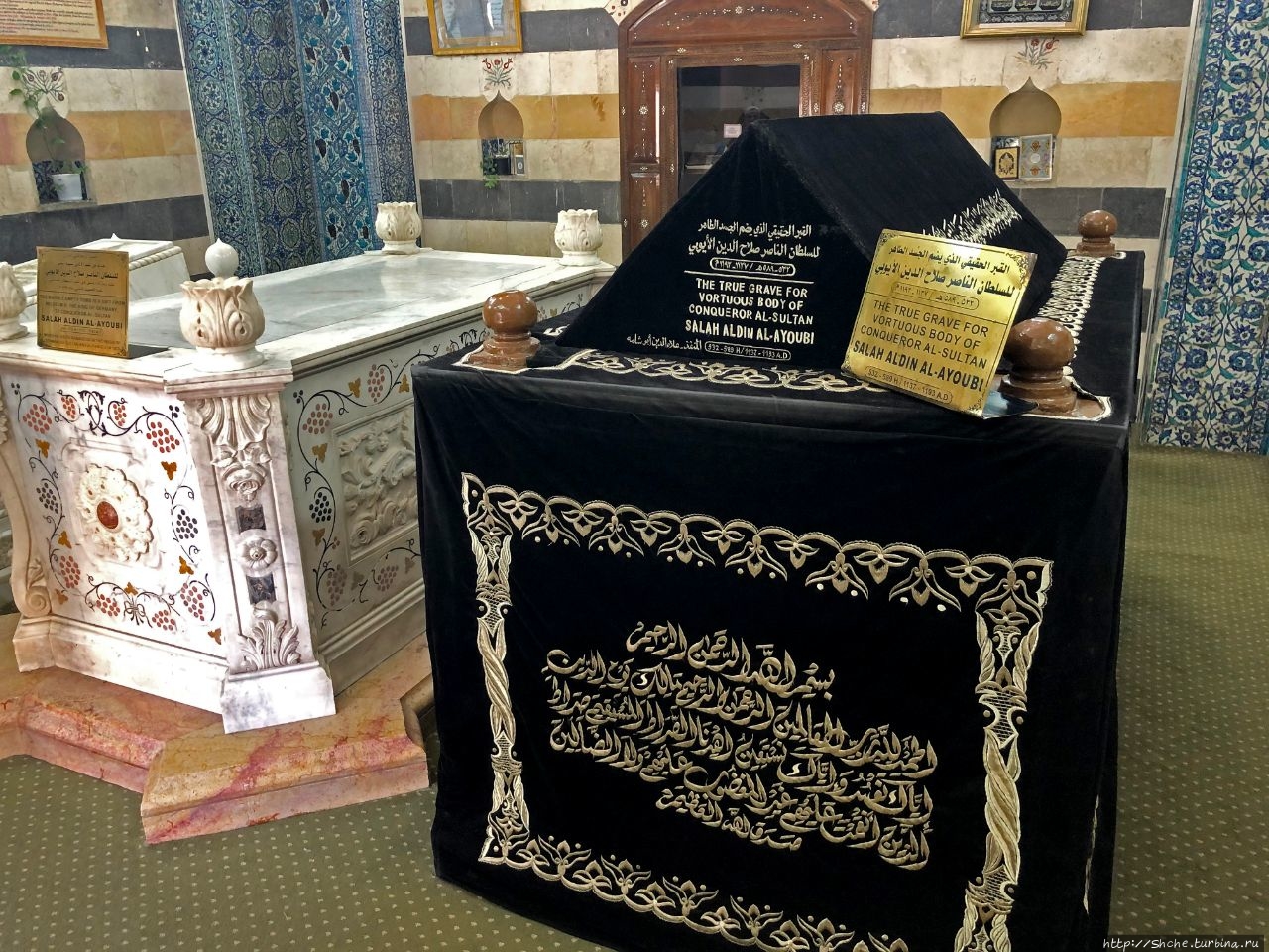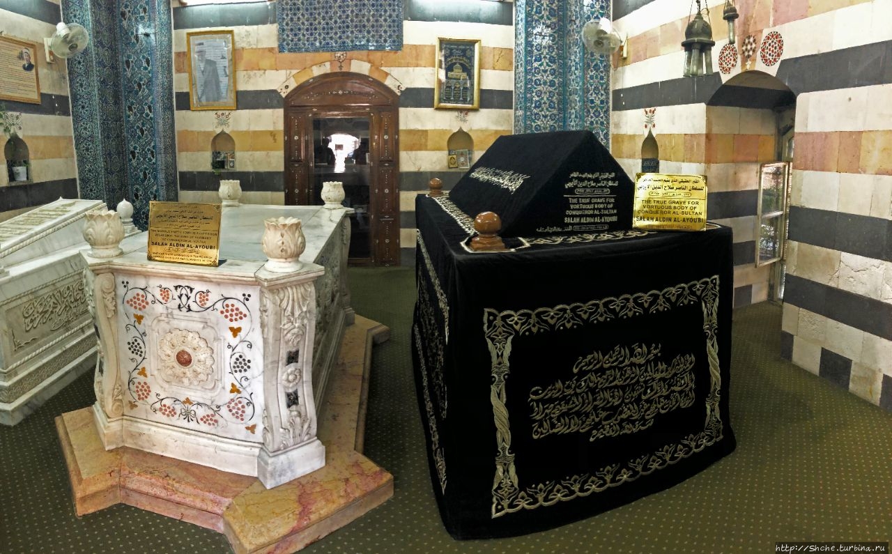 Табличка с информацией на английском указывается, что именно это является истинный местом упокоения тела "завоевателя Салах ад-Дина".