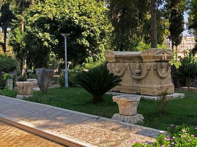 Рядом есть небольшой портик. Видимо его тоже как-то сняли со входа какого-то сооружения, и сейчас думают, как бы его по-интереснее применить.