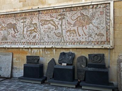 Правда один участник группы умудрялся немного приотставать от группы и за маленькую мзду смотрителям кое-что снимать. Я, был бы сам, может сразу бы договорился с музейным сотрудником, но в группе я не нарушал правил. Отмечу, коллекция музея реально впечатляет. особенно меня поразили погребальные барельефы, привезенные сюда из Пальмиры. На самых шикарных из них по мнению исследователей древние резчики изображали последний обед умершего в присутствии жены и его сыновей.