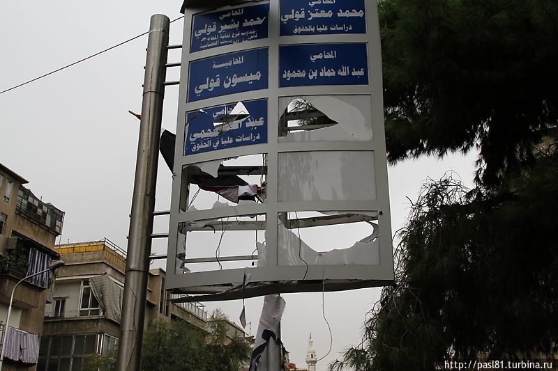 Нас сопровождают солдаты. Сперва это всего несколько человек, но откуда-то появляются все новые лица и скоро вокруг полтора десятка человек. А сверху, с балконов верхних этажей, нам машут руками их товарищи. Кто-то включил патриотическую песню о Сирии…