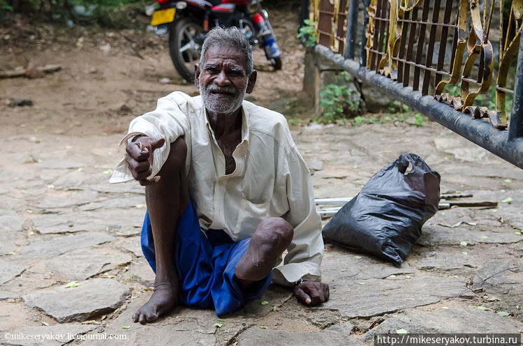 Но вернемся к Дамбулле, после Золотого Будды до самого храма ехать около 10 минут. Транспорт непосредственно к воротам подъехать не может и поэтому примерно 100 метров придётся подниматься вверх пешком. Храм Дамбуллы был построен в первом веке до нашей эры и это действительно уникальное место на нашей планете. Самый крупный пещерный храм во всей южной Азии уже 22 века является местом для паломничества. Название Дамбулла переводится как "место у воды" — "улла" — место, а "дамба" — вода. Около ворот, как наверное и у многих других храмов, туристов встречают инвалиды – попрошайки.