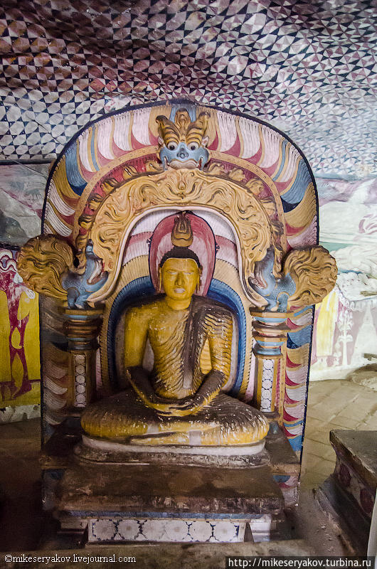 Сигирии находится ещё одна очень интересная достопримечательность острова Цейлон — золотой храм Дамбулла. Это пещерный буддийский храм 1-ого века нашей эры.