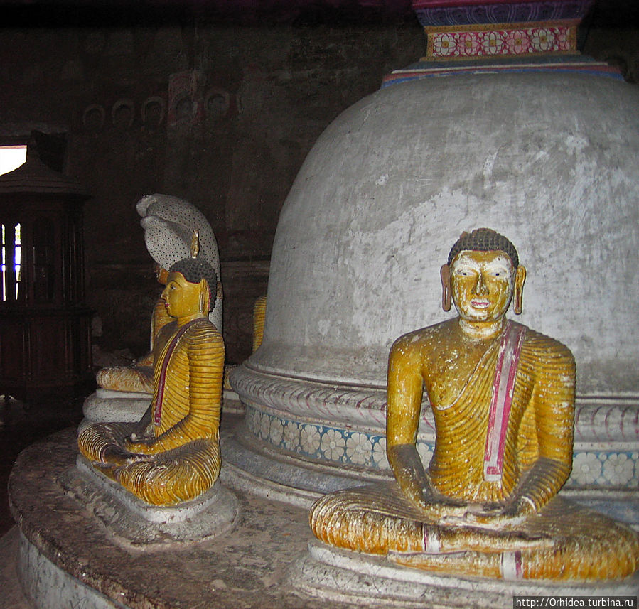На красивейшей горе на высоте 350 метров в пяти пещерах и многочисленных нишах нашли свой приют статуи будд. Стены и потолок пещер украшают многочисленные фрески, в которых отображены главные моменты жизни Будды: его рождение, отречение от царской жизни, прозрение, семь недель после озарения, чтение первой проповеди, уход в блаженство Нирваны... Остатки штукатурки со следами краски снаружи пещер указывают на то, что храм представлял собой сплошную галерею живописи.