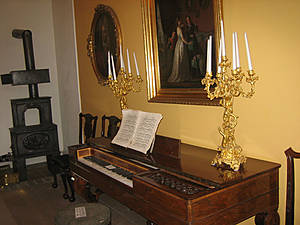 Интересно оформление охотничьего зала и музыкальной комнаты.