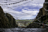 До горы на самом деле недалеко, дорога туда идёт по живописному ущелью с речкой, поселковым водозабором и кучей молитвенных флажков "лунг-та" (переводится как "конь ветра").