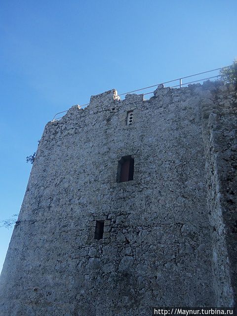 Скала , на которой стоит крепость, со стороны подхода к ней по дороге , совершенно отвесна, что делало крепость абсолютно неприступной.