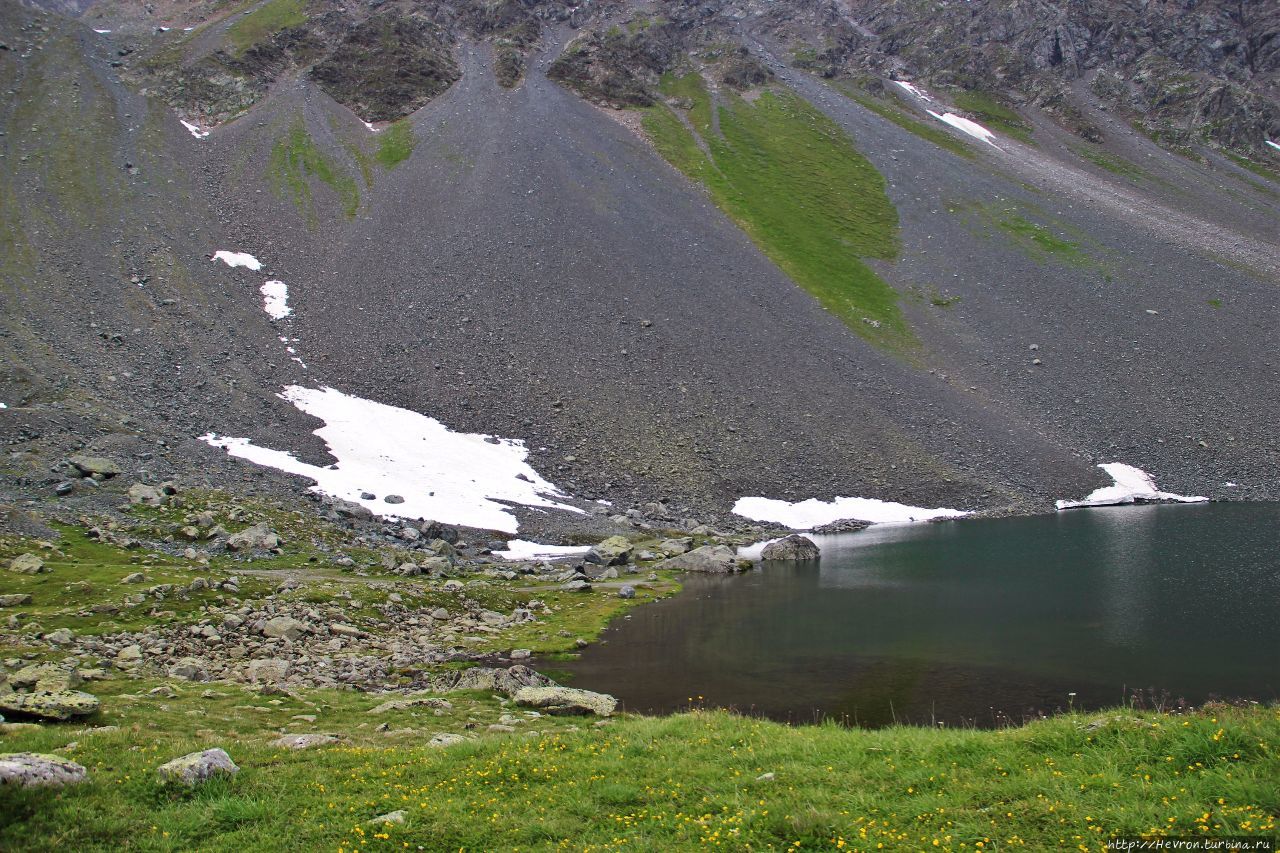 Само озеро настолько маленькое, что я вначале и за озеро его не приняла. Так, большая лужа, набежало с ледняков...)) Зато окружающая его природа была очень живописной. Даже камни тут были какими-то красивыми.