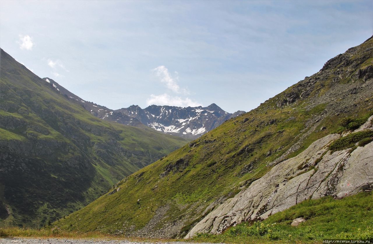 Дальше дорога проходила через национальный парк, но дорога из Давоса мне показалась намного живописнее и красивее с ее сурками и коровами. А на территории парка нам не попалось никакой живности, даже снег пропал и вообще светило яркое солнце. Вокруг были маленькие домики, кемпинги и прочая атрибутика туристов.