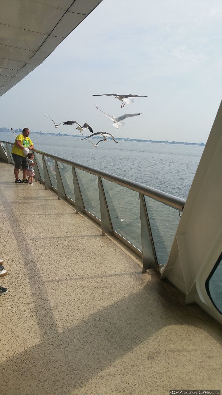 Переправиться можно без транспорта, вместе с автомобилем, мотоциклом или велосипедом. билет туда-обратно с автомобилем — 37 Евро, для пешехода — всего 2,50. Длительность рейса — 20 минут. На борту работает столовая.