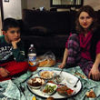 Турок привез нас к себе домой. Он живет в огромной, по нашим меркам, квартире с женой и 2 детьми. В наше распоряжение предоставили целую комнату, горячий душ. Жена бросилась накрывать пол (да-да, традиционно, турки принимают пищу на полу) и вскоре нас позвали ужинать. На покрывале стоял круглый большой металлический поднос, а на нем разные блюда.