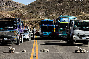 Оказывается, дорогу перекрыли утром, часов в 10. Обещают стоять до последнего (выраженного в уходе Моралеса). Впереди через несколько километров еще одна баррикада. И в Уюни тоже шахтеры на дорогах. Бастующие из шахтеров, ребята отчаянные. С учетом того, что динамит в свободной продаже, понятно что полиция в происходящее старается не вмешиваться. Говорят, минирование, на всякий случай, уже произведено.