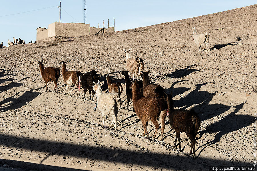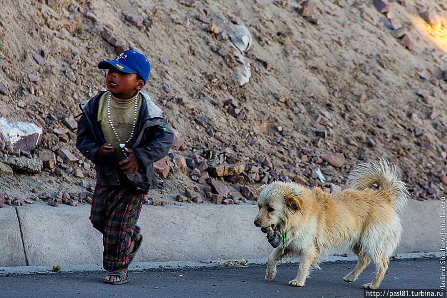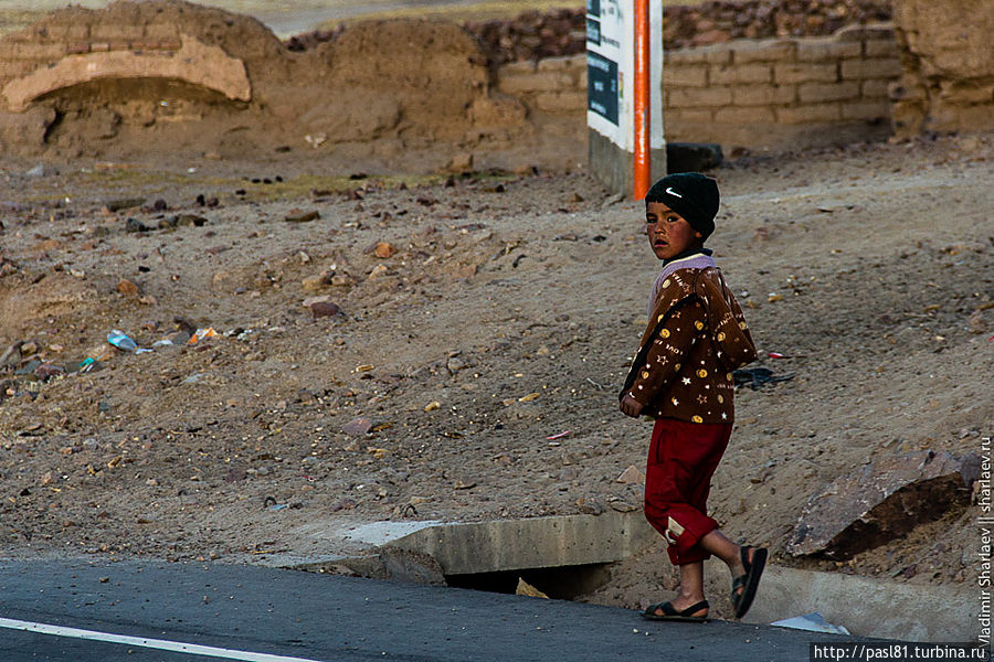 На закате приехали в холодный поселок. Дети гонят огромные стада лам домой. Одеты в какие-то весьма легкие майки, идут босиком! Но с каждой минутой все холоднее. И когда солнце скрылось мы уже в зимних куртках стоим и думаем, что их вес был совсем не лишним.