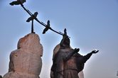 Центральное место в скульптурной композиции занимает четырехметровая бронзовая фигура
