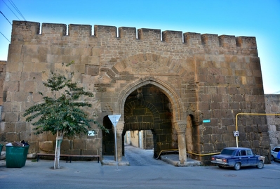 Восточные ворота цитадели Нарын-Кала (Стоячие ворота) у которых стояли просители — главные её ворота, устроенные в подпорной стене и перекрытые стрельчатыми арками и плитами основания помещений ханской канцелярии Фет-Али-хана.