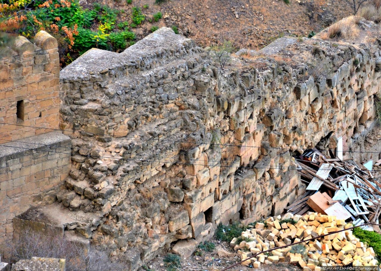 За воротами Кырхляр находится участок стены, где хорошо видна древняя каменная кладка.