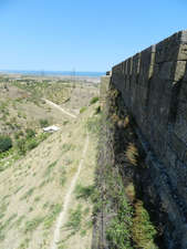 Расстояние от верхней крепости до моря около 3-х километров, и нынешние стены нижнего города сохранились не полностью. Кусочек южной так и вообще тянется не более чем на 600 м.