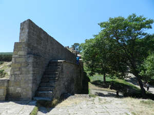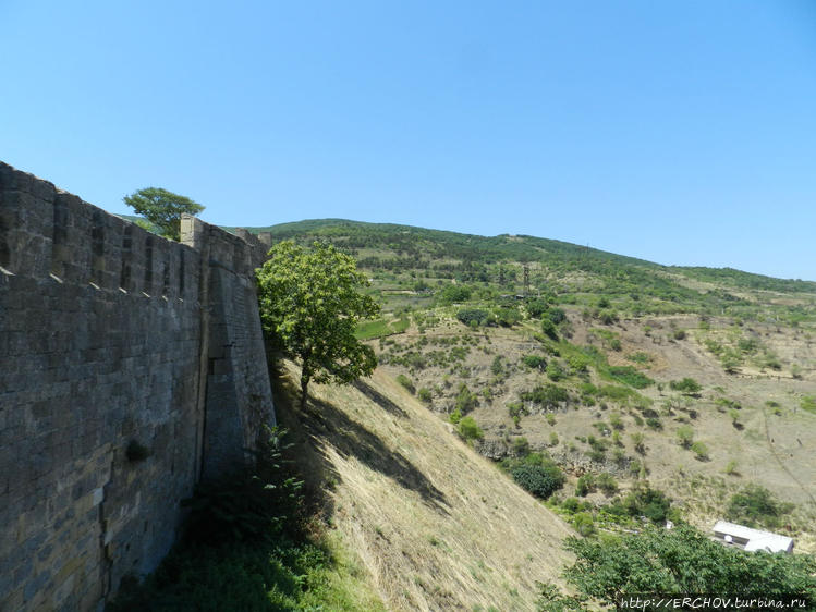 Отсюда сверху открывается умопомрачительный вид на город, позади которого синеет море. С правого угла верхней крепости спускается вниз южная стена, но до моря она уже не доходит.