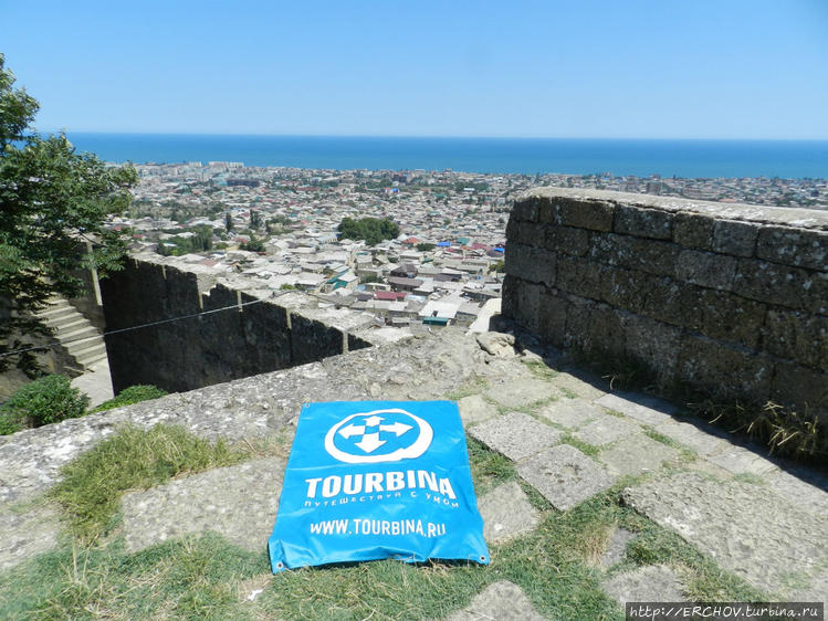 Позже мы действительно видели как женщина гид старой закалки из туристической компании Туруниверсал, рассказывала именно на этом месте своим туристам про Дербент. В наше время по рабочим дням посмотреть крепость приезжает 500-600 человек, в выходные их число может доходить до 5 тысяч, но по советским меркам это мало. Будем надеяться, что со временем ситуация с туризмом в Дагестане вернётся на прежний более высокий уровень.