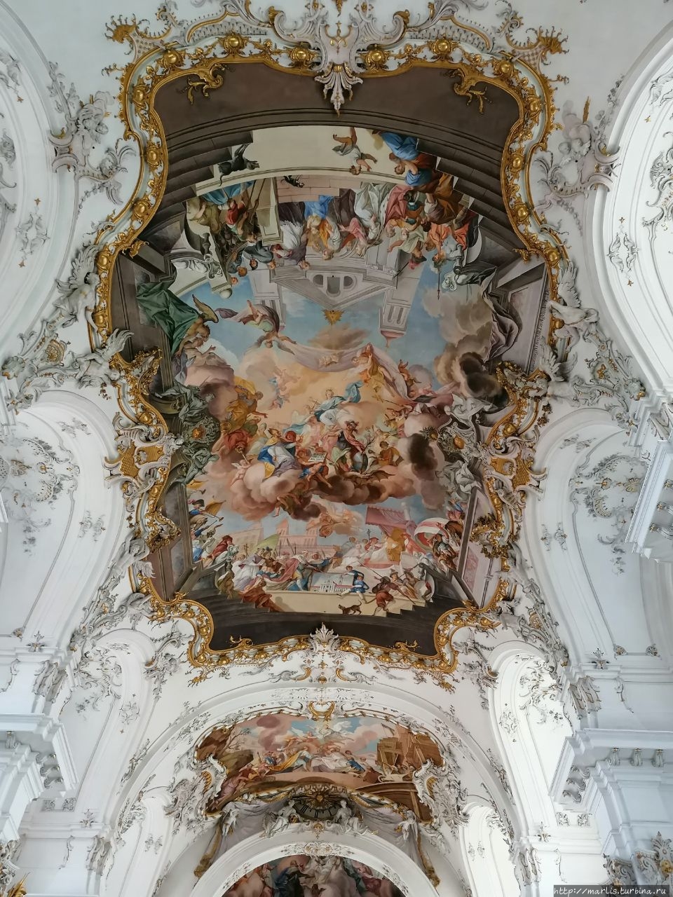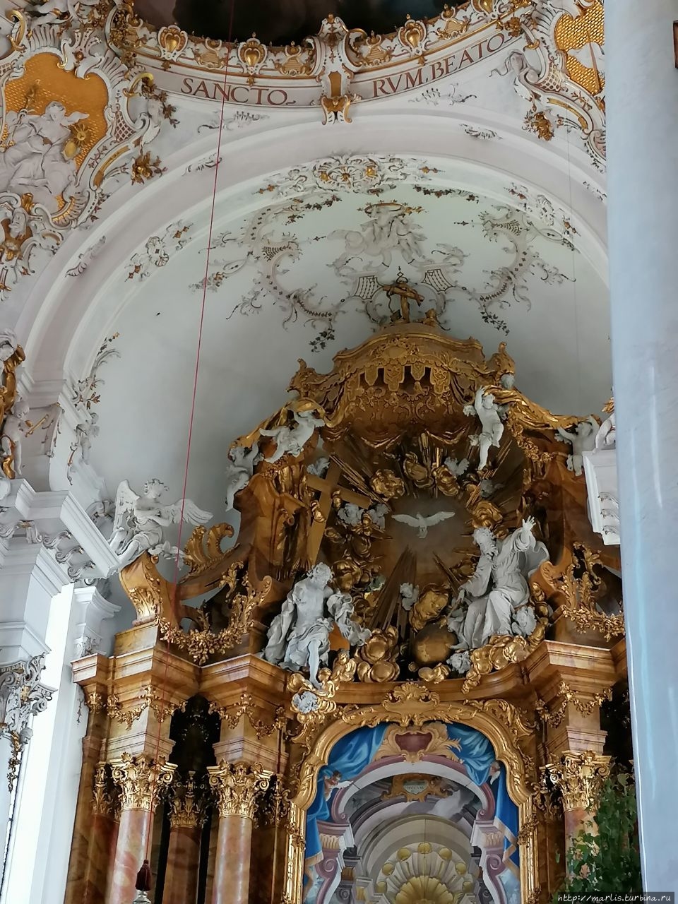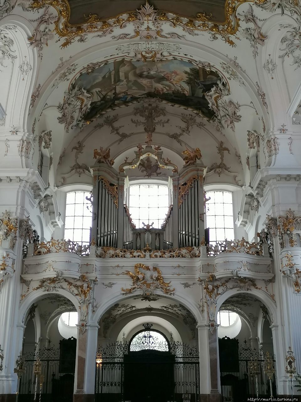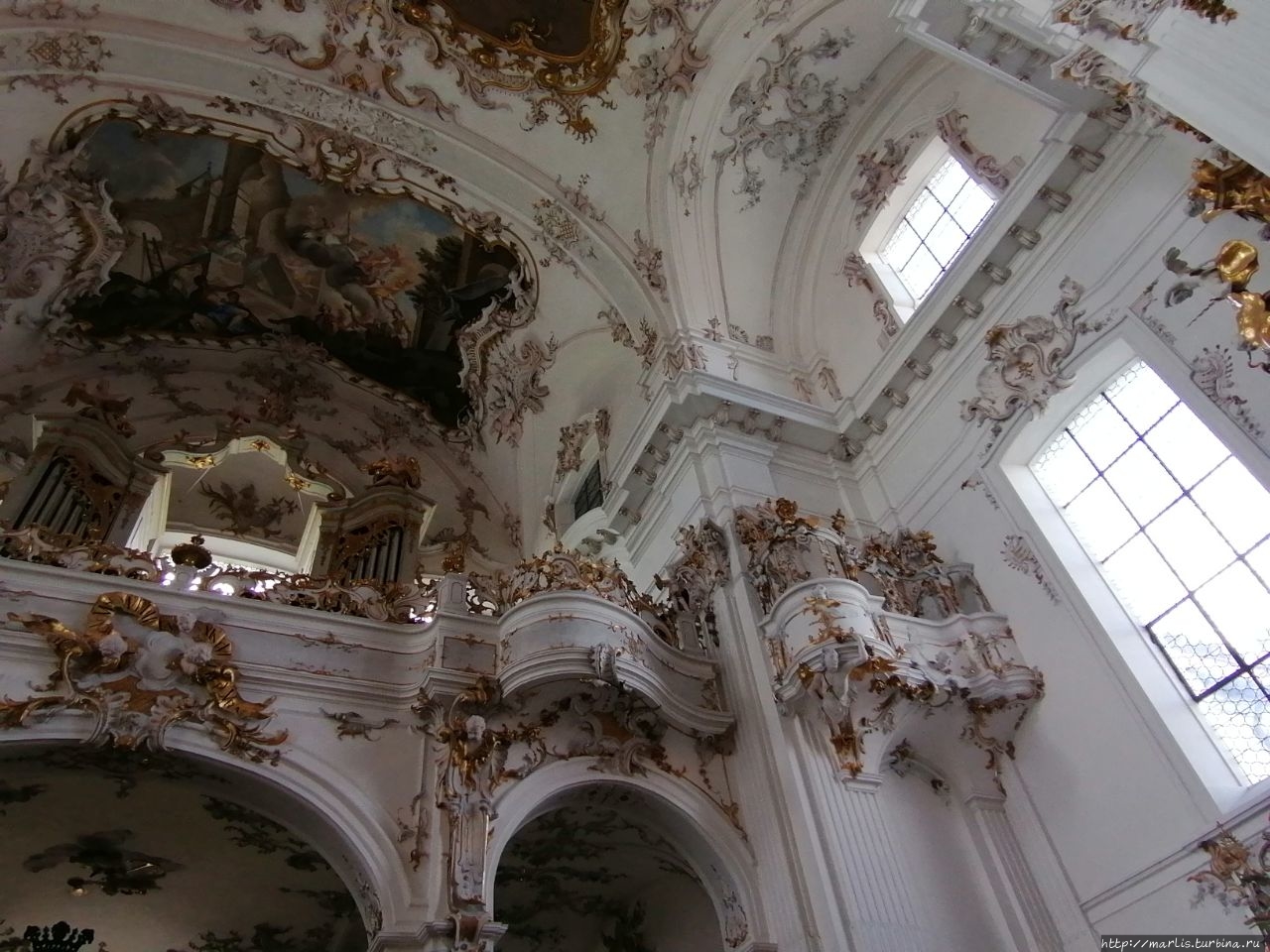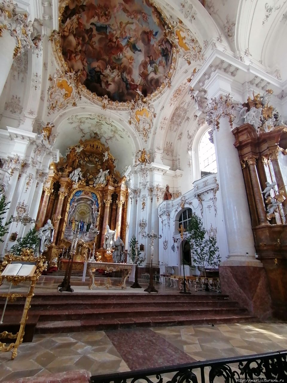 Внутренней отделкой храма занимались мастера Вессобрунской школы, в том числе братья Файхтмаер.
