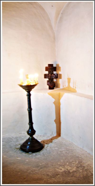 Комплекс, расположенный в основании мелового Дива, имеет два этажа. В первом находится непосредственно пещерная церковь с иконой и галерея, огибающая помещение церкви по кругу. Галерея имеет восемь расширенных камер-аркосолий с углублениями в виде киотов. Считается, что камеры могли использоваться для захоронений по типу пещер Киево-Печерской Лавры. Фотографировать в пещерах можно, но сложно — узкое пространство и толпа народу, которая делает это пространство еще меньше. А те фотографии, что я всё-таки сделала, получились ужасно и «вытянуть» их невозможно.