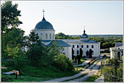 Комплекс Дивногорского Свято-Успенского монастыря состоит из церкви Успения Божией матери и пещерной церкви Иоанна Предтечи. Первое, что мы увидели – была Успенская церковь. Как часто бывает, первый храм на этом месте был выстроен в дереве. Произошло это в 1695 году. Но простояв почти сто лет, она была разобрана по ветхости, и выстроена новая – каменная, которая еще через столетия опять была разобрана и снова выстроена новая – в византийском стиле.