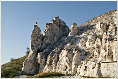 Есть и еще одна причина называться Дивногорью так — это Дивы. Меловые столбы различной формы вертикально поднимаются над крутыми склонами. Когда-то их было гораздо больше, чем можно увидеть сейчас. Значительная часть столбов была взорвана во время Великой Отечественной войны, но те, что остались, охраняются в настоящее время с особой тщательностью.