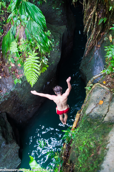 Если хотите испытать себя на прочность, отправляйтесь на Титу Гордж. Водопад небольшой речушки в Доминике.
