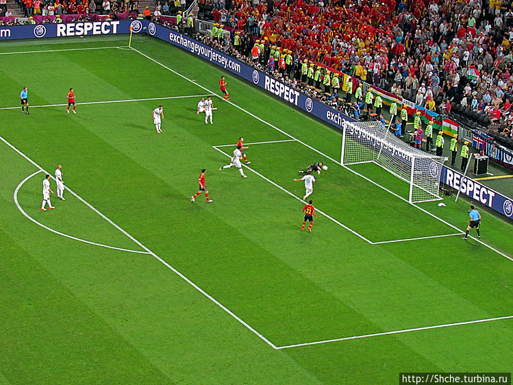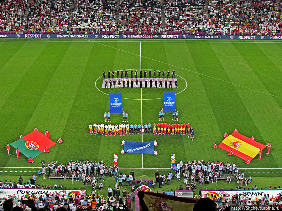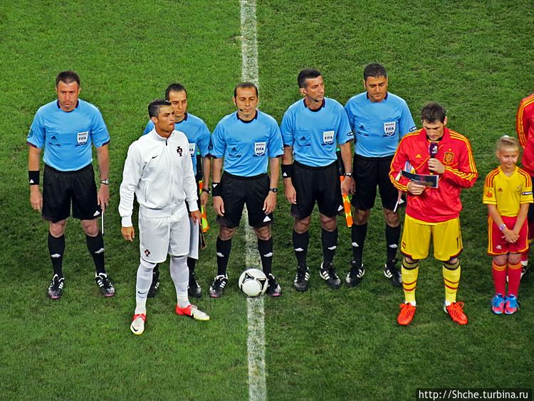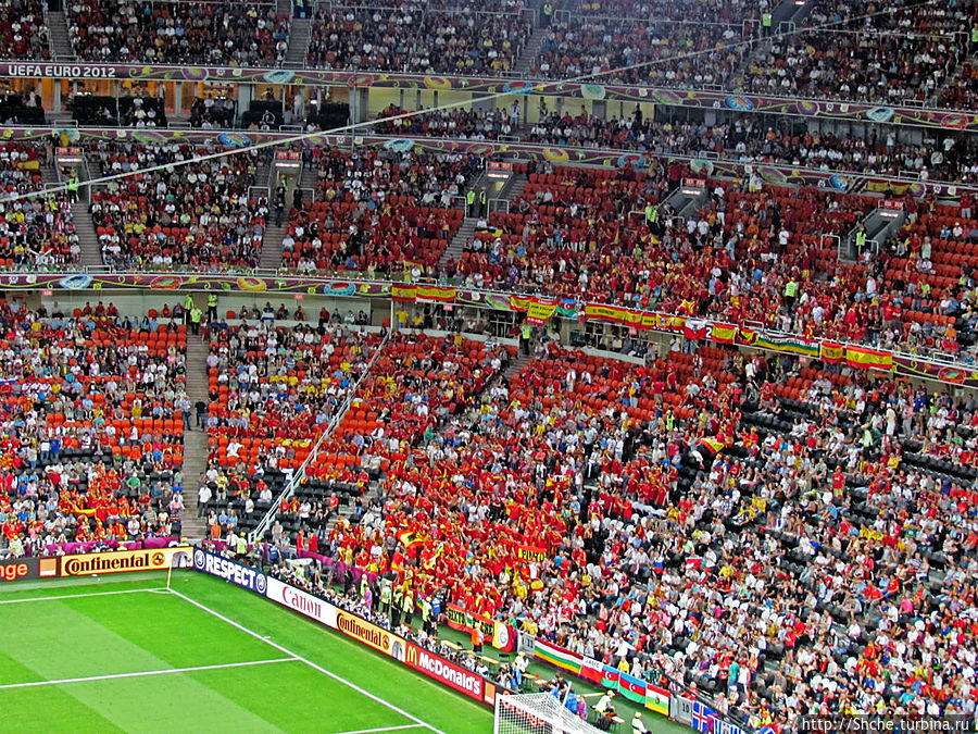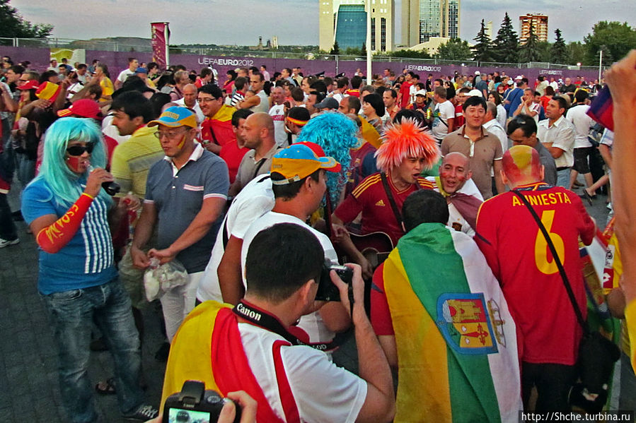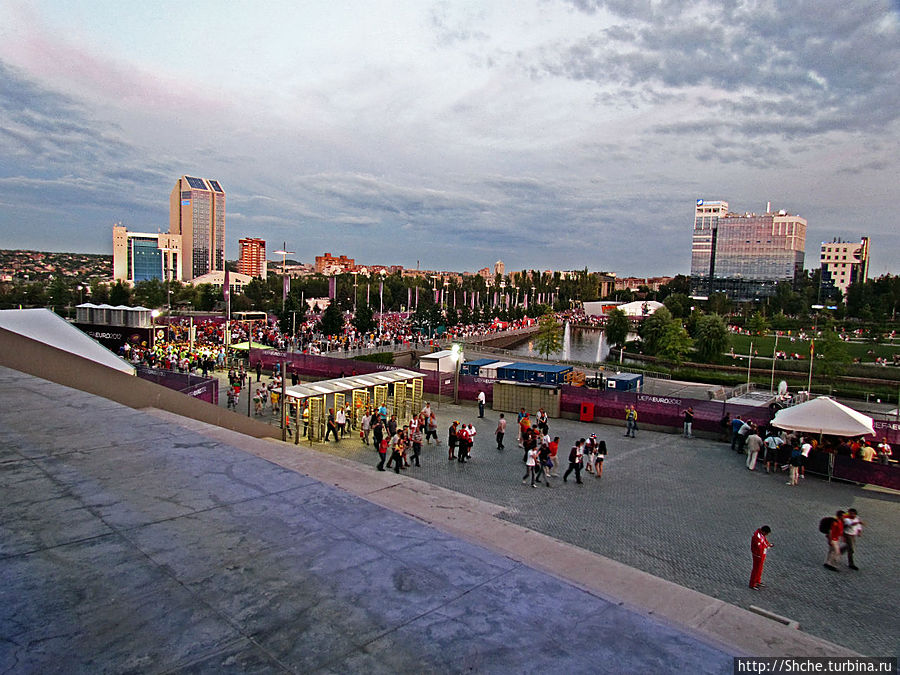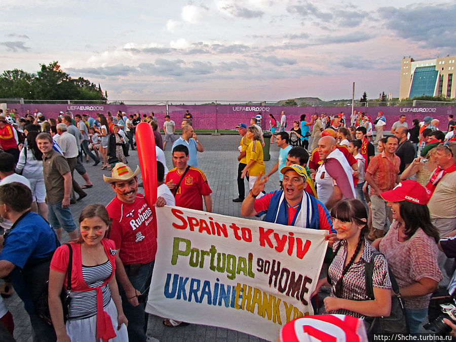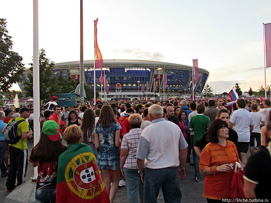 Вот и настало время моего предпоследнего матча в рамках ЕВРО-2012. Мы прехали в третий раз в Донецк 27 июня, теперь на полуфинал. Сразу отмечу, это был первый в моей долгой болельщицкой истории полуфинальный матч на стадионе в рамках любого турнира, до этого я останавливался максимум на 1/4-й. В полуфинале в Донецке встречались соседи по Пиренейскому полуострову сборные Испании и Португалии.