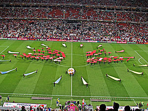 А тем временем 10 минут до начала игры. Начинается официальное окрытие, то же что и в первых матчах, так же не понятое мною...