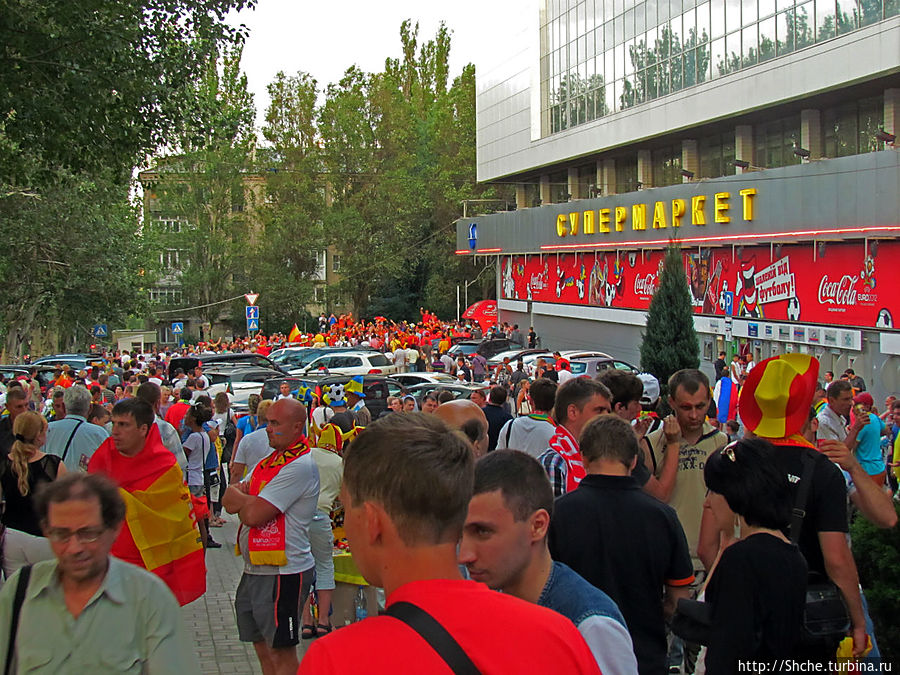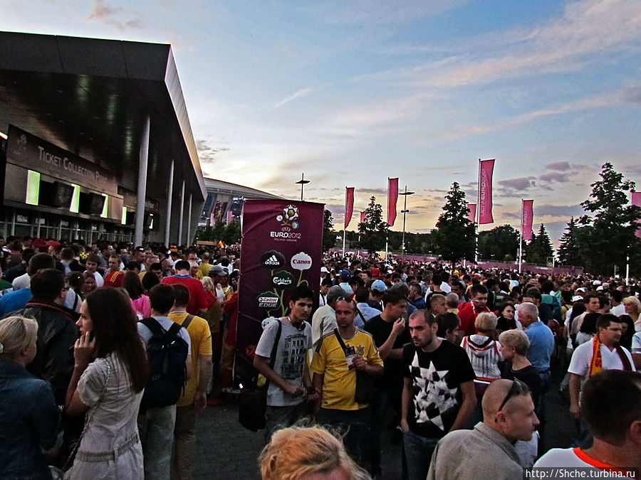Примерно за час до матча перед стадионом было много народу, и тут тоже продавали билеты, уже ниже номинала. Это был самый неожиданный и досадный момент всего посещения города. К вам привезли полуфинал ЕВРО, лучшие команды Европы, что еще нужно, что бы заполнить стадион? Да еще Платини отчитался, что все билеты проданы! Ну да, УЕФА билеты реализовало, но как, увидим уже на трибунах...