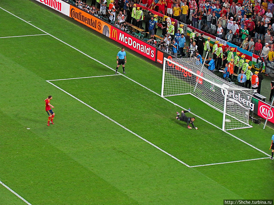 Вторым у испанцев бьет Иньеста. Точно!